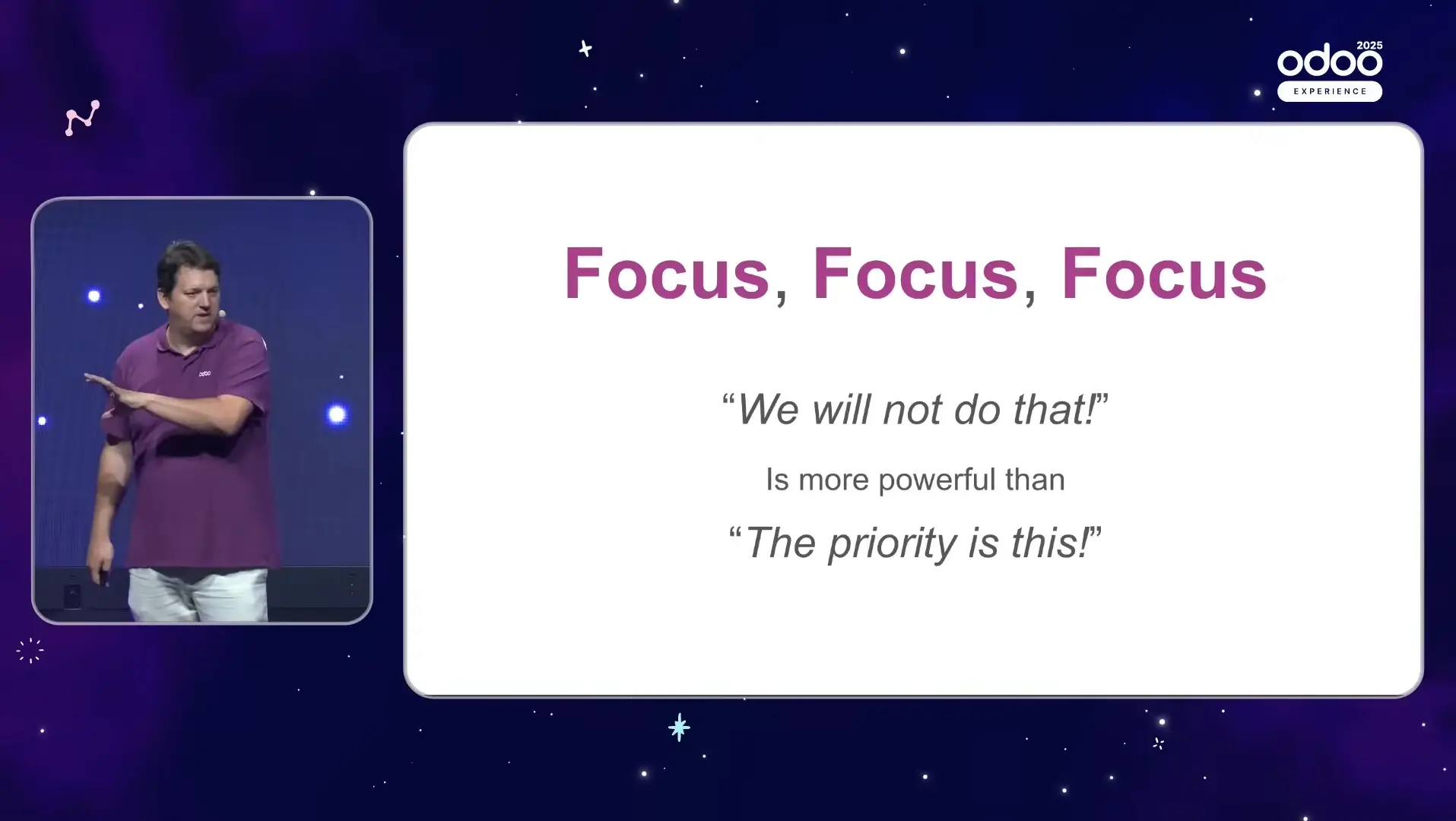 Odoo’s growth reflects a simple idea: keeping things simple helps teams move faster. The company works to avoid the bureaucracy that often comes with scale. Instead of adding processes, Odoo removes them. Focus is defined not only by what to do, but by what not to do—keeping the organization agile, responsive, and clear on priorities.